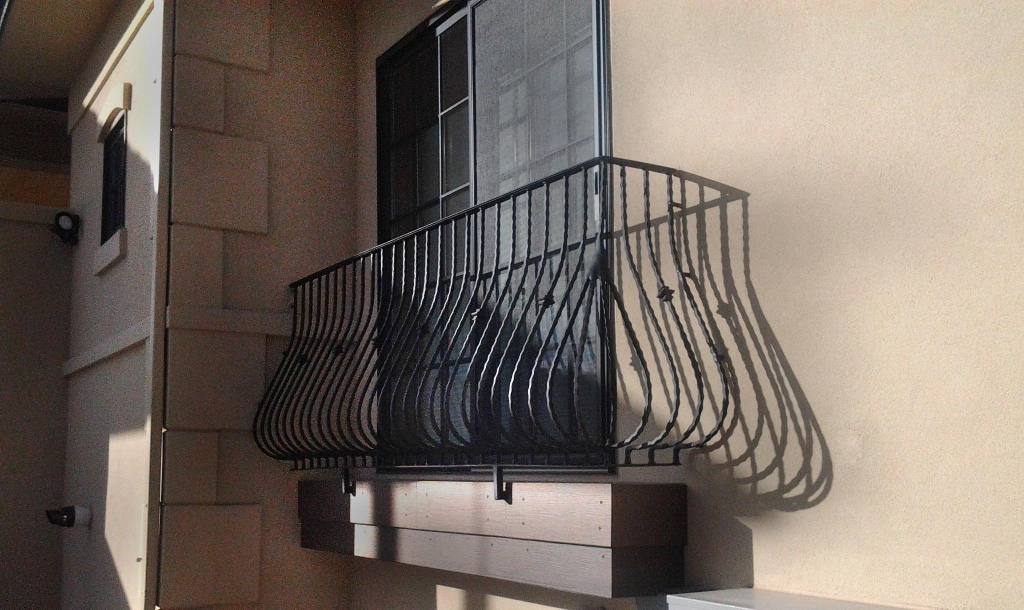 | Custom transitional ironwork balcony. | | Custom traditional wrought iron exterior guardrail | | Custom traditional wrought iron exterior balcony |