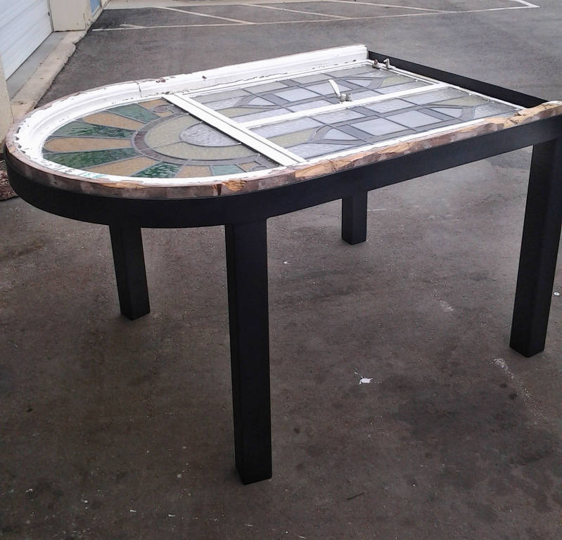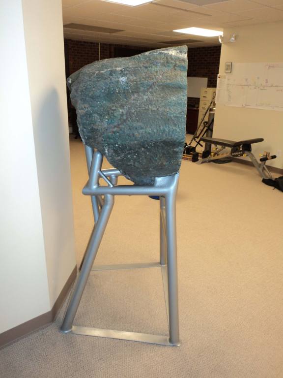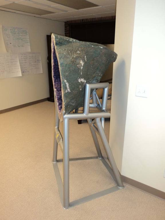 | Custom fabricated steel boat trailer. | | Custom geological specimen stand. | | |